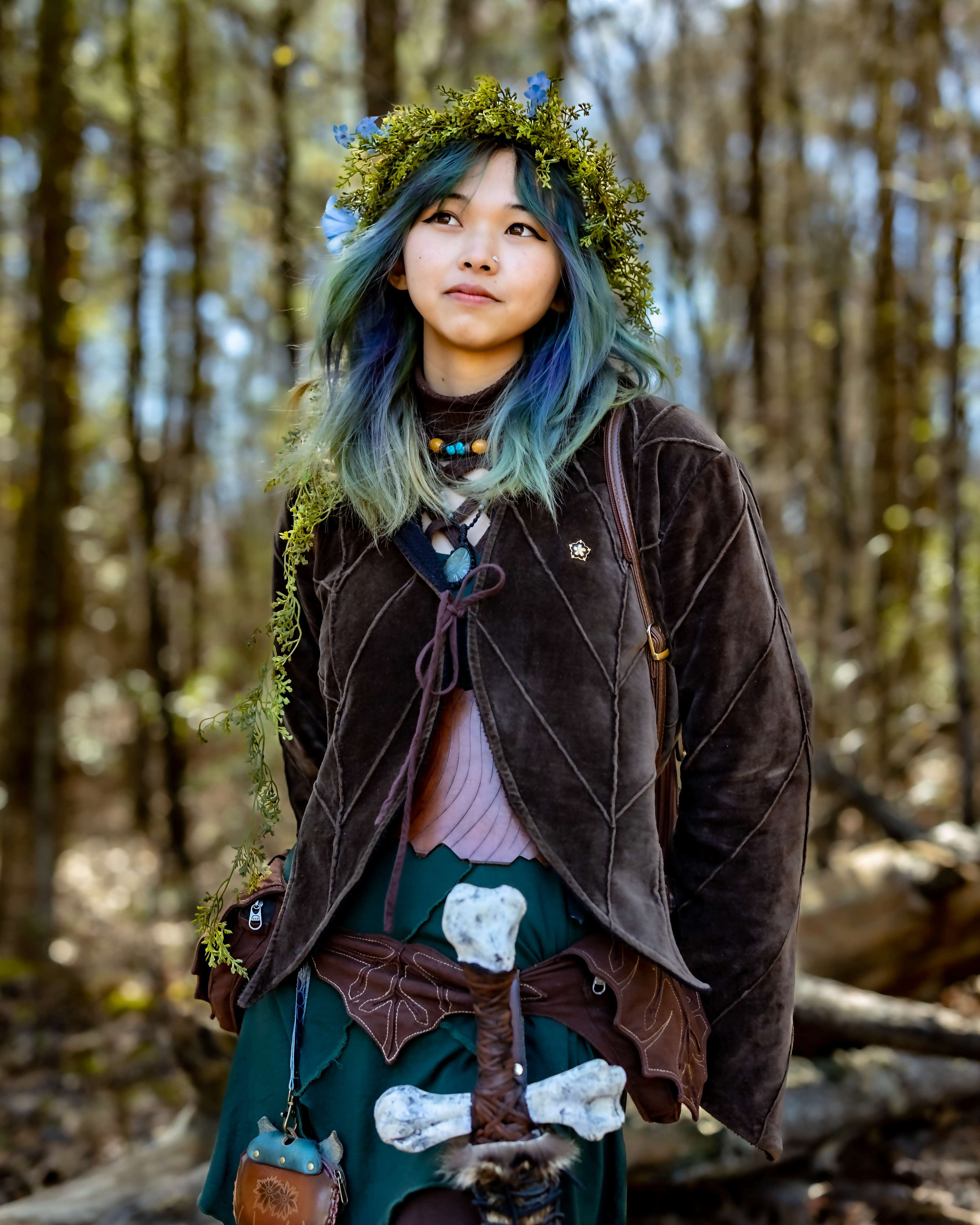 All Dryads must incorporate plants, vegetation or fungus into their hair, face, or skin to the point where it can be easily recognized at a distance. This can be done through prosthetics with optional make-up.